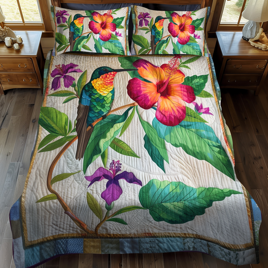 Hummingbird With Tropical Hibiscus 3-Piece Quilted Bedding Set NCU0PT023