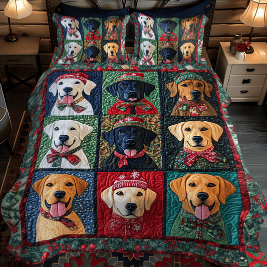 Playful Christmas Labrador 3-Piece Quilted Bedding Set NCU0PD543