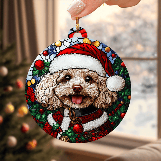 Santa Poodle Helper Quilted Christmas Tree Skirt NCU0DV8079