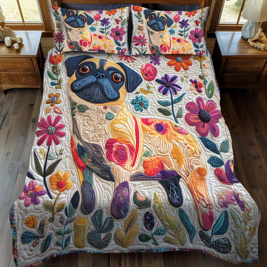 Charming Pug 3-Piece Quilted Bedding Set NCU0VL361