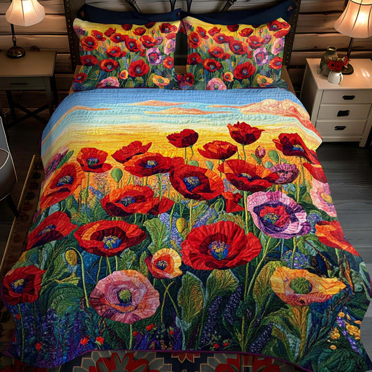 Poppy Field 3-Piece Quilted Bedding Set NCU0NT1072