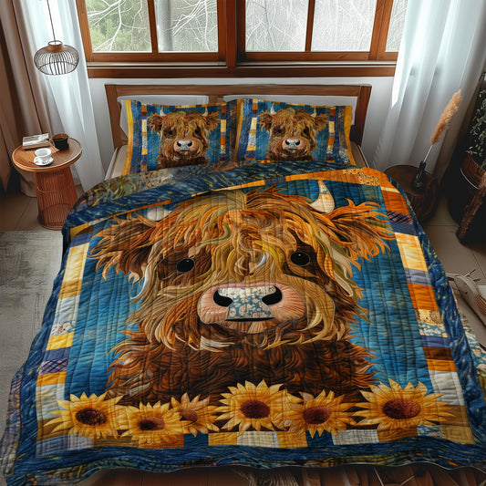 Sunny Highland Cow 3-Piece Quilted Bedding Set NCU0TH909