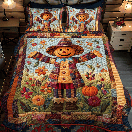 Harvest Time Scarecrow 3-Piece Quilted Bedding Set NCU0PD707