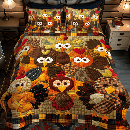 Turkey Family 3-Piece Quilted Bedding Set NCU0TH1105