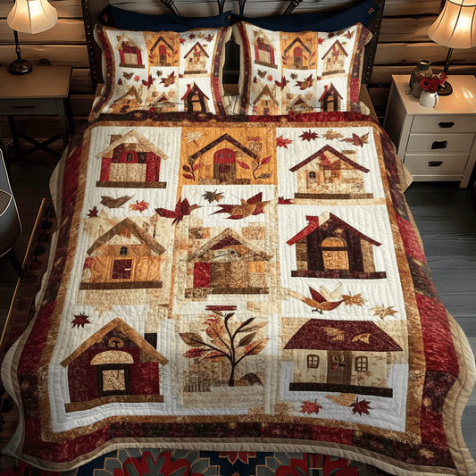 Autumn Bird House 3-Piece Quilted Bedding Set NCU0PD711