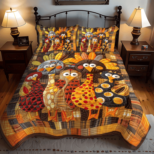 Thanksgiving Feast Turkey 3-Piece Quilted Bedding Set NCU0PD701