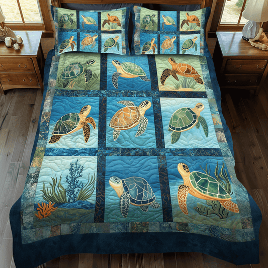 Sea Turtle Sanctuary 3-Piece Quilted Bedding Set NCU0TL1127