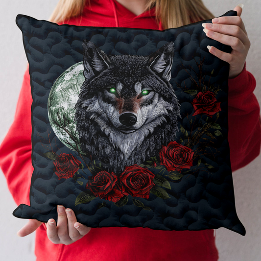 Silver Moon Wolf Quilted Pillow Case NCU0DK4176