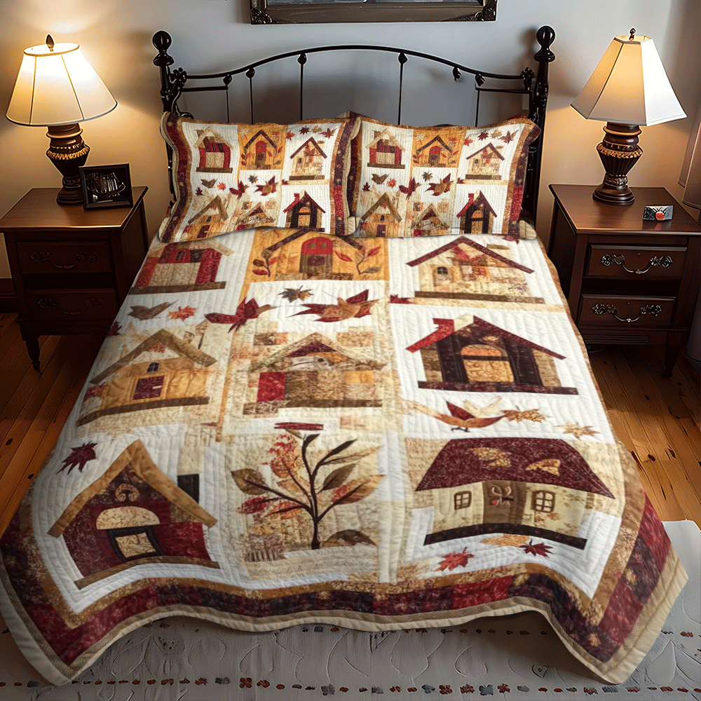 Autumn Bird House 3-Piece Quilted Bedding Set NCU0PD711