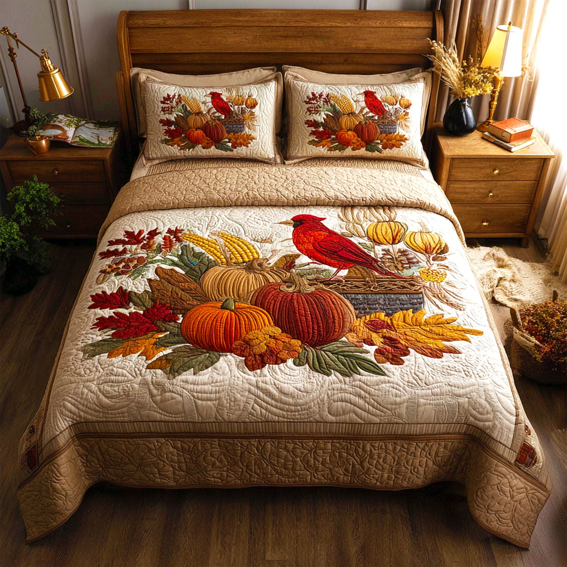 Autumn Cardinal 3-Piece Quilted Bedding Set NCU0TV033