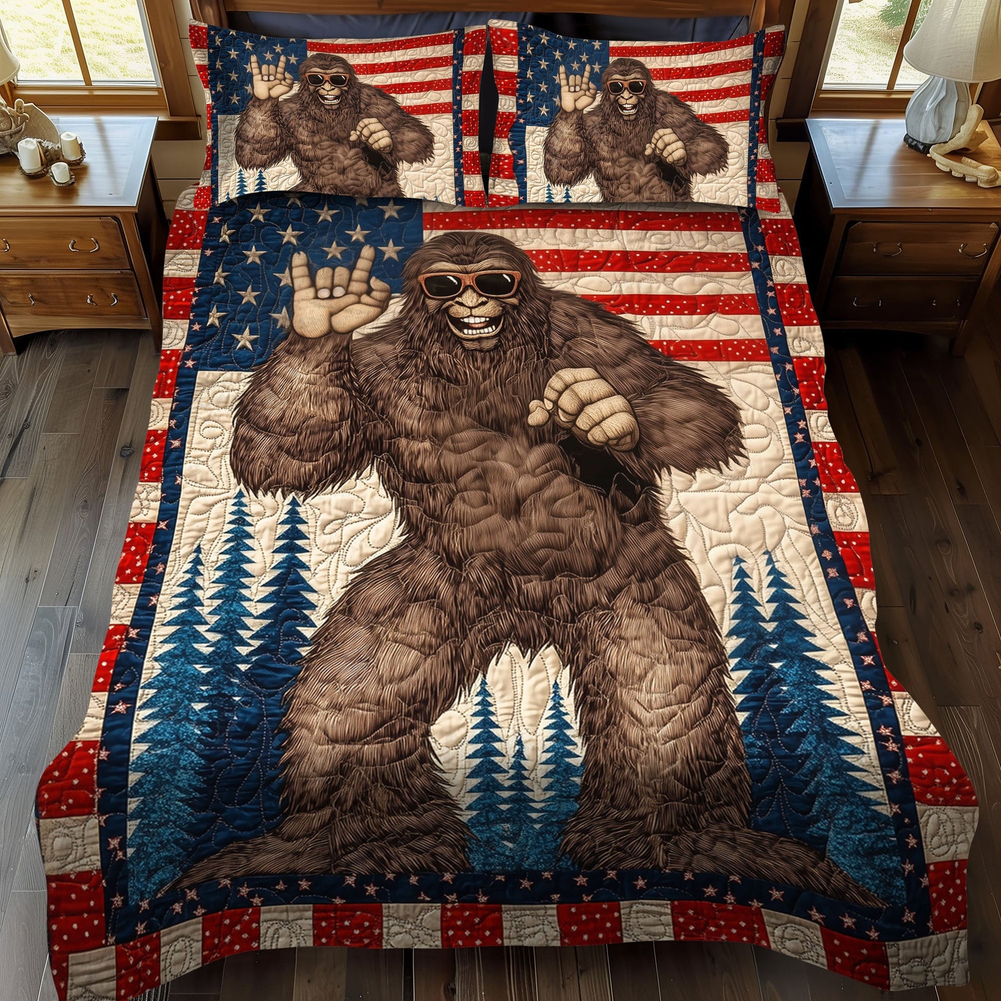 Bigfoot and the Flag 3-Piece Quilted Bedding Set NCU0PT7713