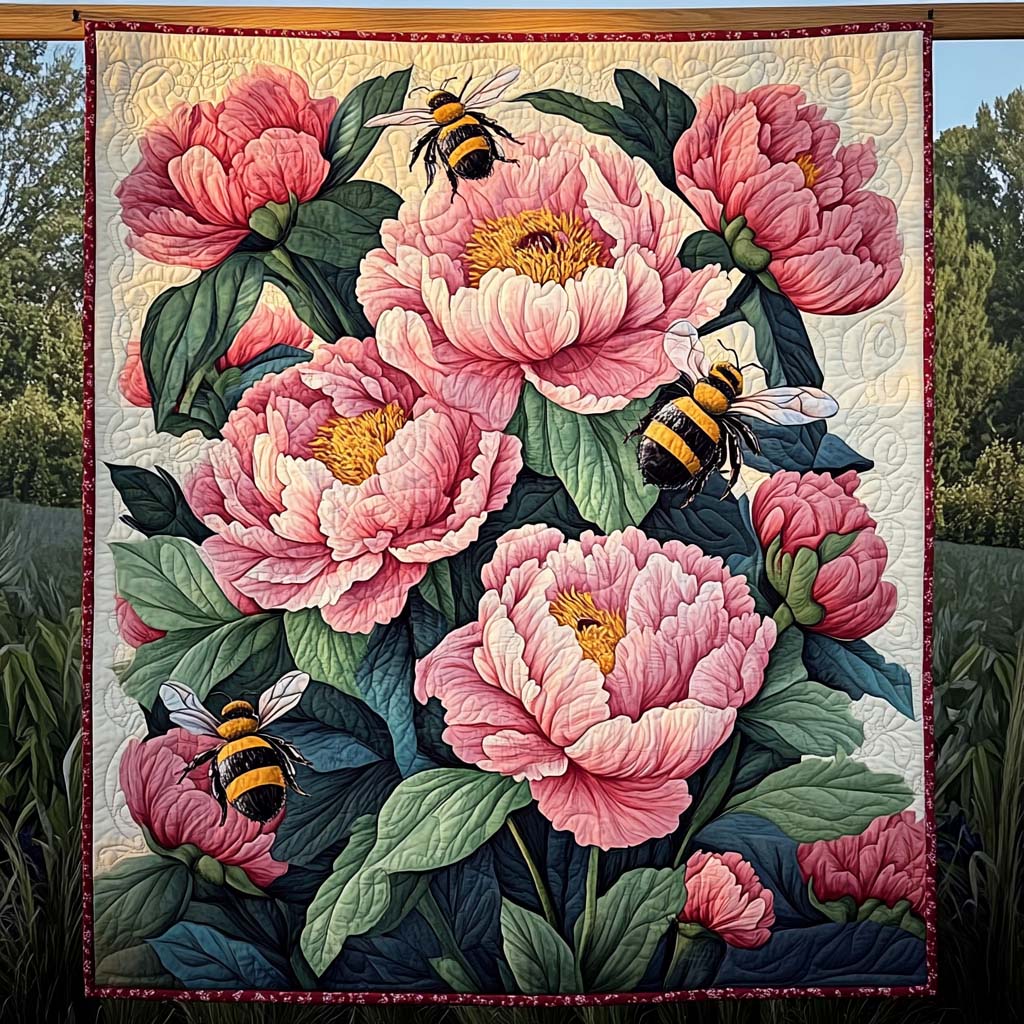 Busy Bees and Peonies Art Quilt Hanging NCU0NT853