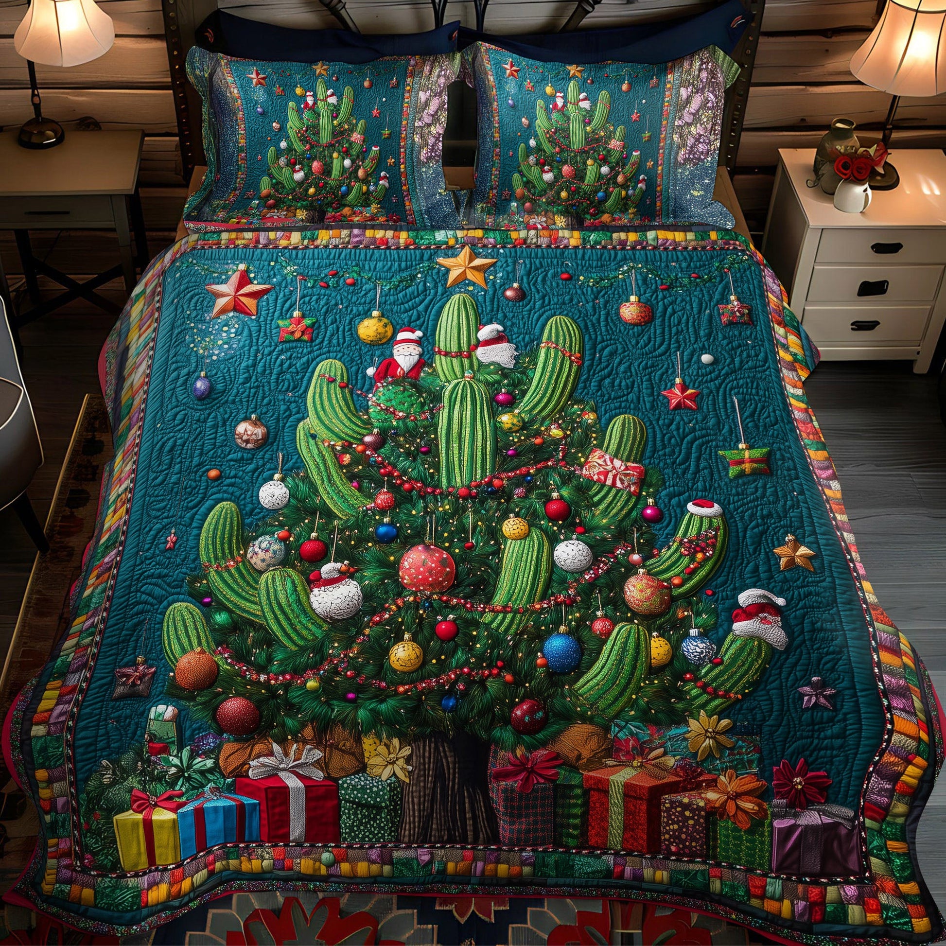 Cactus Reflections 3-Piece Quilted Bedding Set NCU0PT2566