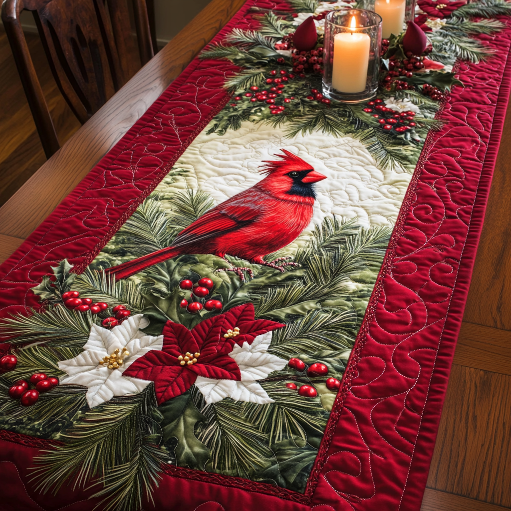 Festive Cardinal Quilted Table Runner NCU0VH003