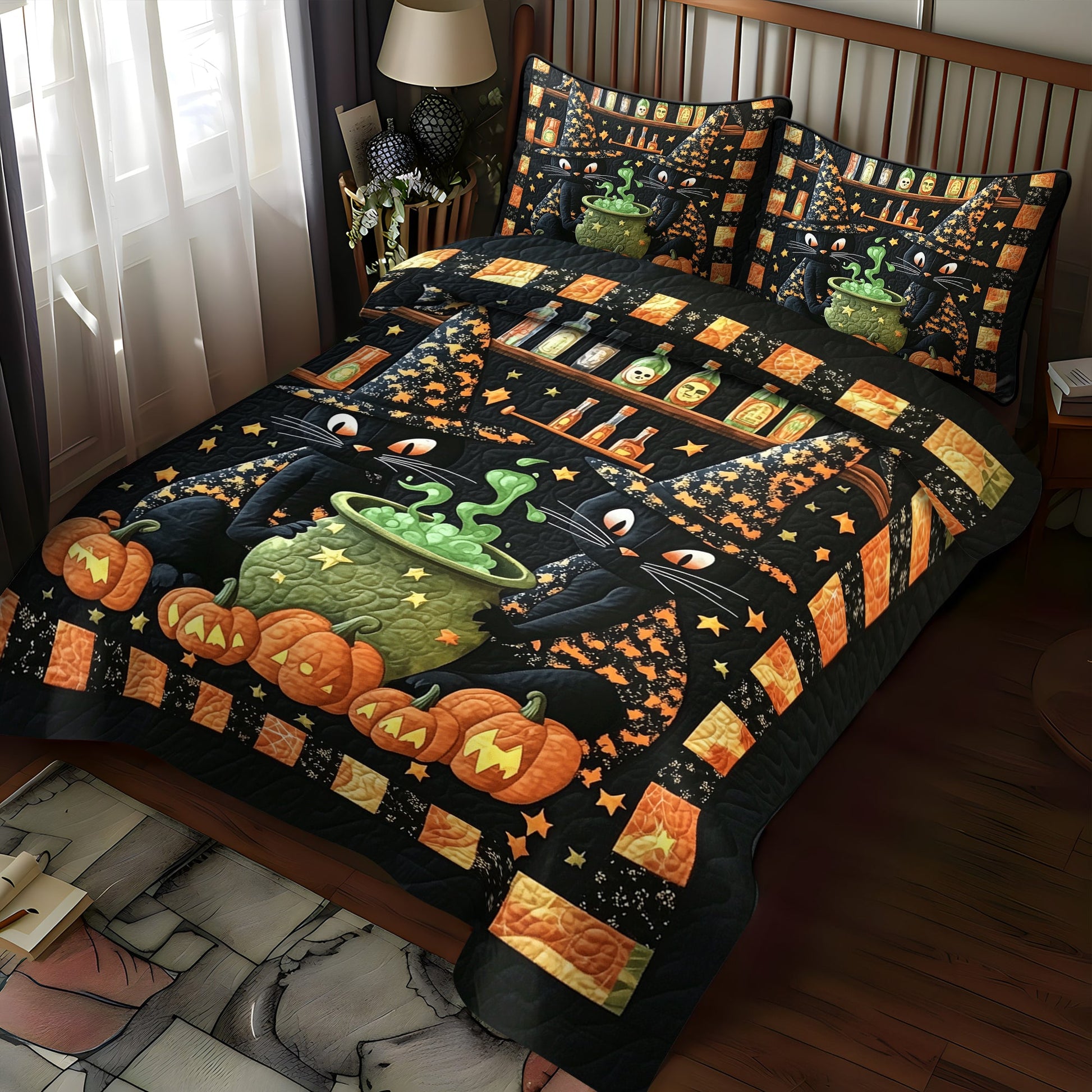 Cat Magic Potion 3-Piece Quilted Bedding Set NCU0TH1656
