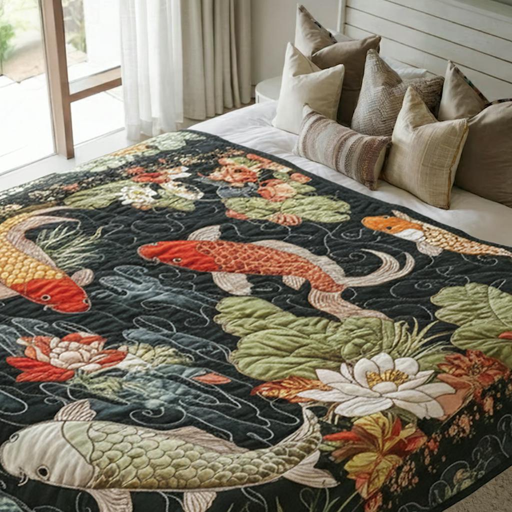 Such a calming design — the koi fish and lotus flowers are beautifully embroidered, and the quilt feels silky, soft, and perfectly weighted.