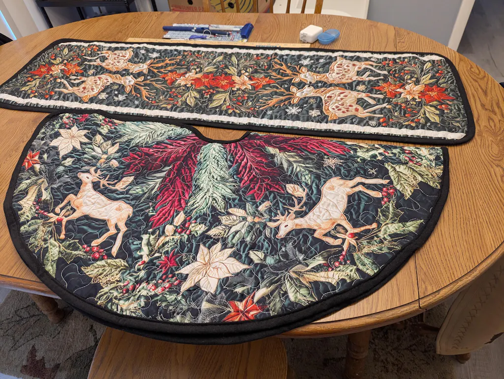 I just got this in the mail. It's absolutely beautiful, I can't wait to decorate now. Is there a table runner to match it? I love the one I got but the colors are pretty different.