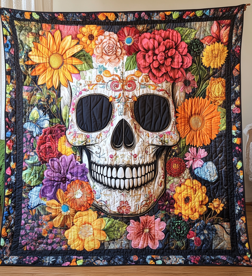 Colorful Skull Accent Quilted Blanket NCU0TL1880