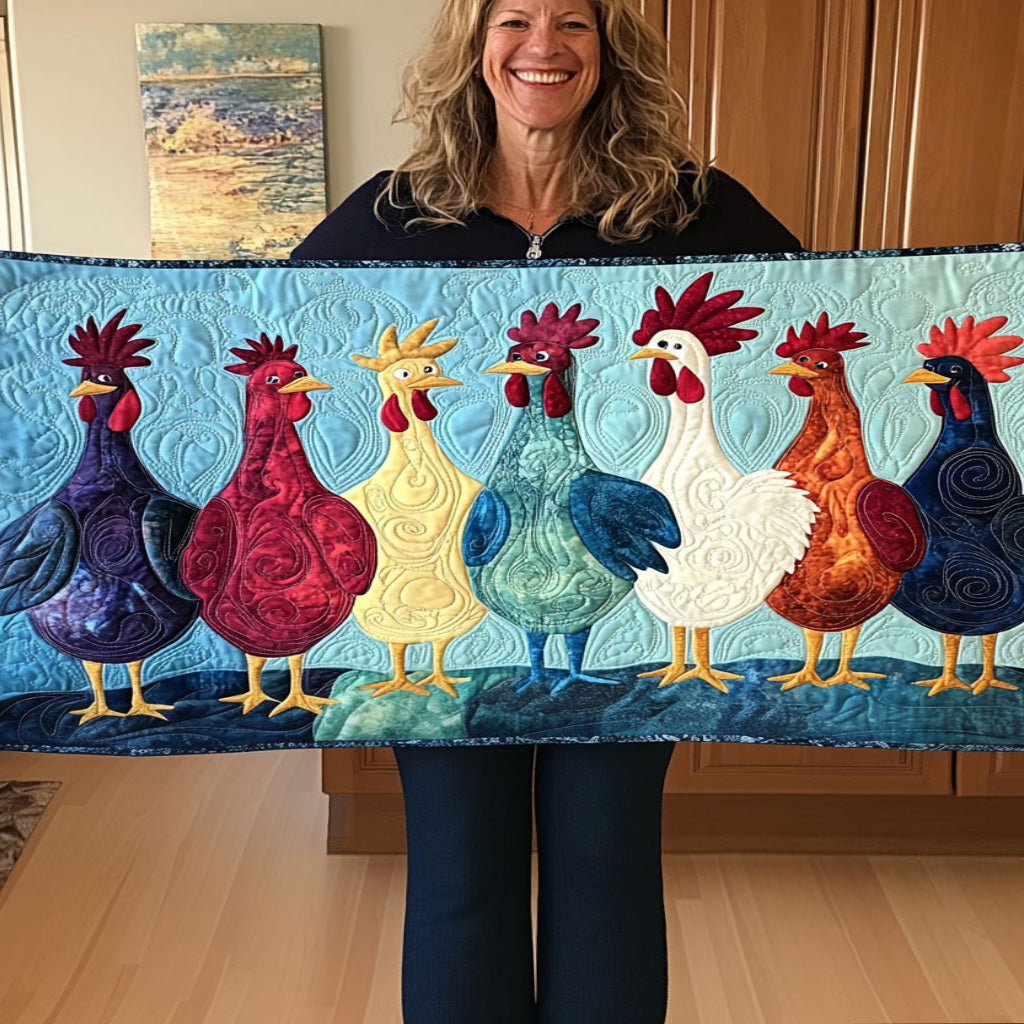 Holy cluck.. These chicken quilted table runners are the eggs-act thing my table needed.. Breakfast just got fancier