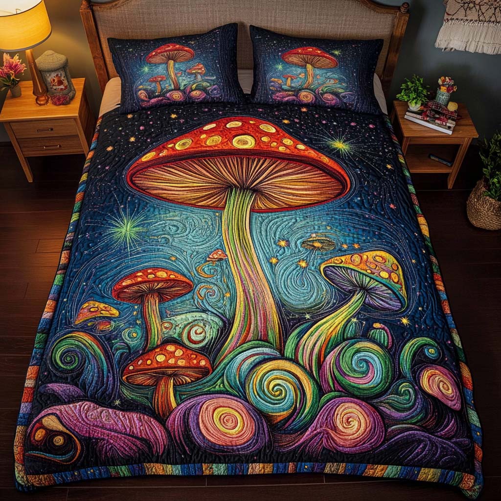 Cosmic Mushrooms 3-Piece Quilted Bedding Set NCU0NT2251