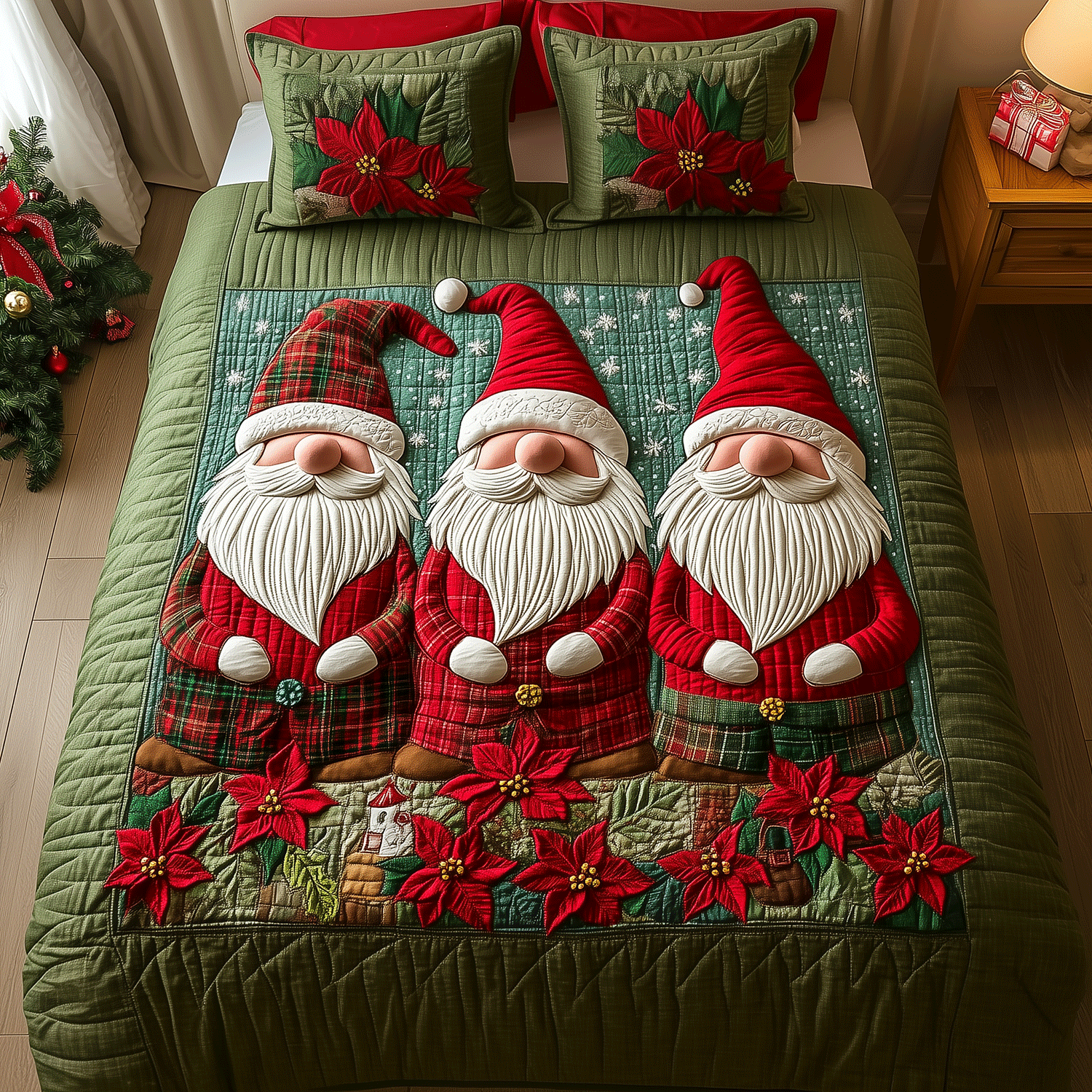 Cozy Christmas Gnome 3-Piece Quilted Bedding Set NCU0TH2125