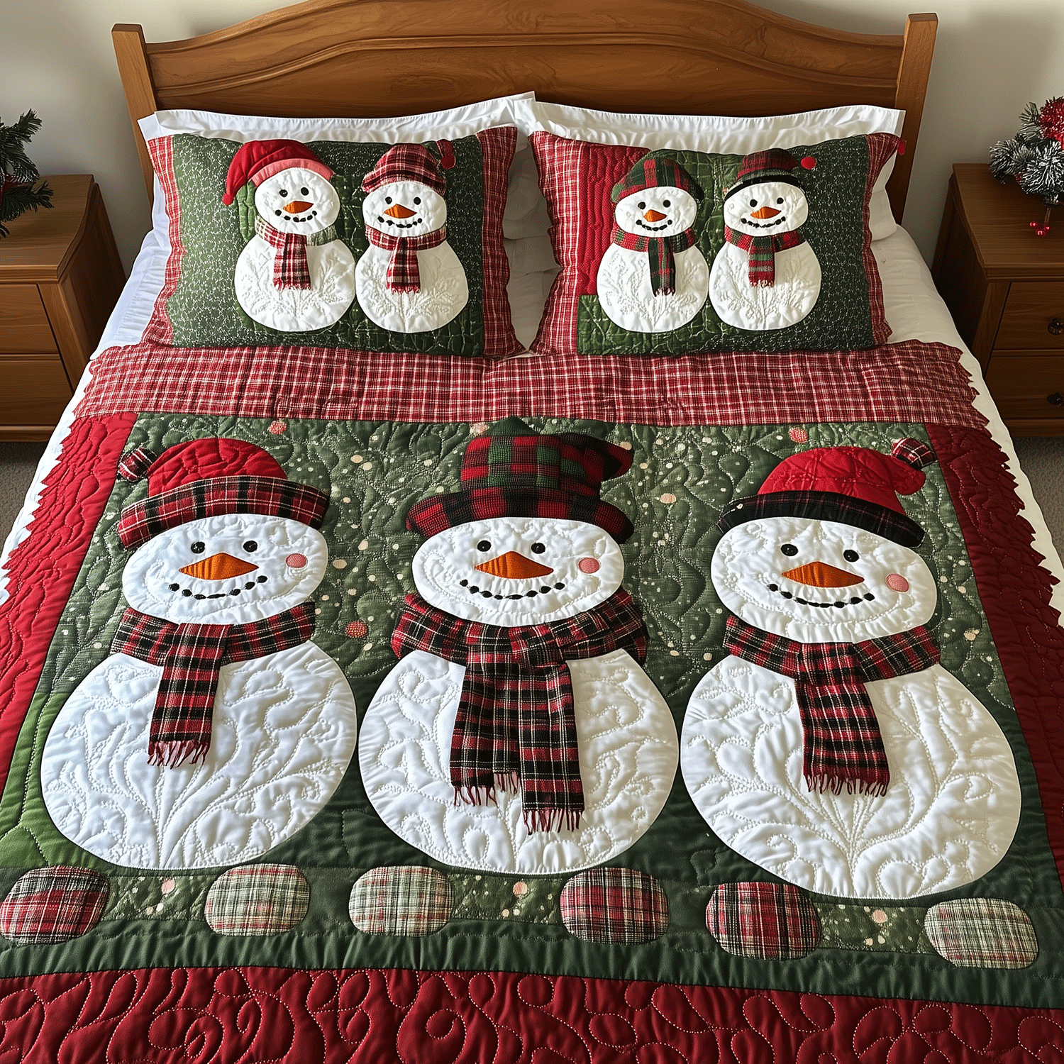 Cozy Snowman Charm 3-Piece Quilted Bedding Set NCU0TH2130