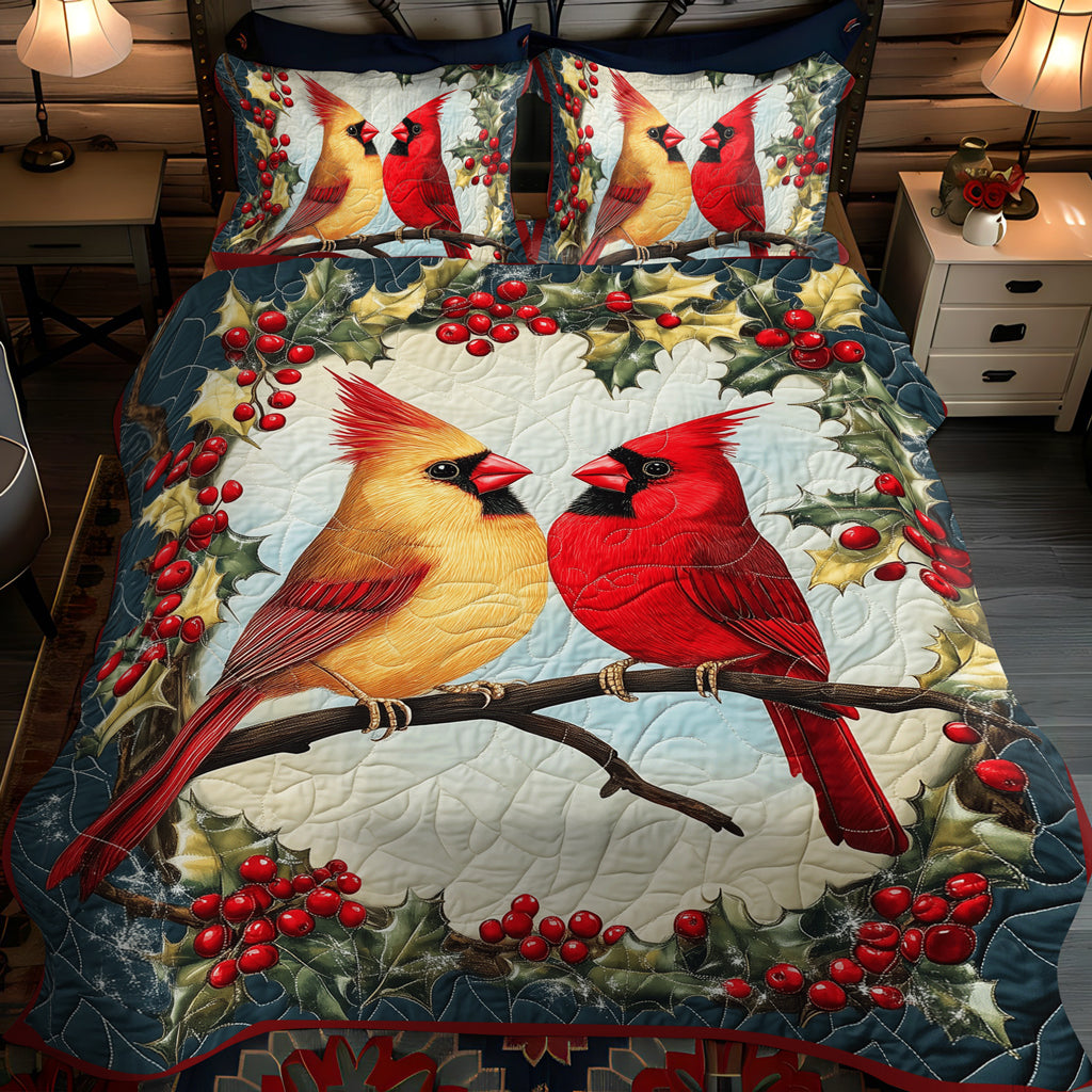 Cozy Winter Cardinals 3-Piece Quilted Bedding Set NCU0TL1498