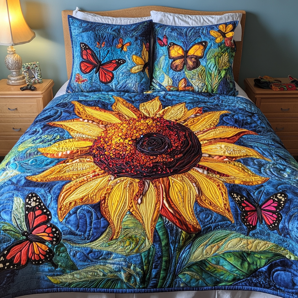 Dancing Sunflowers 3-Piece Quilted Bedding Set NCU0TL1950