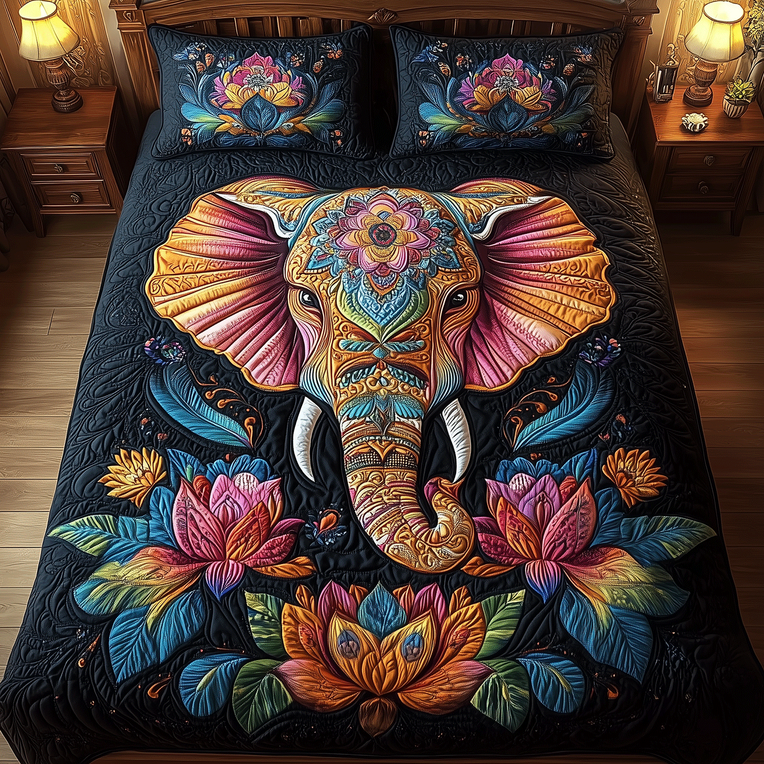 Elephant Lotus Serenity 3-Piece Quilted Bedding Set NCU0TH2250