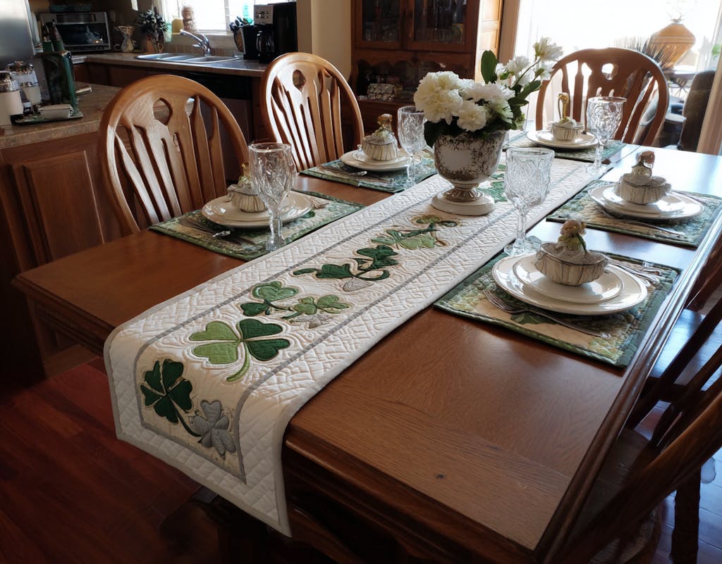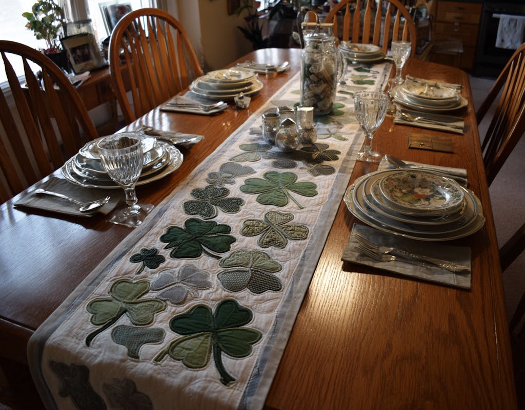 Such lovely greens and stitching! My Irish-themed table has never looked more graceful and welcoming.