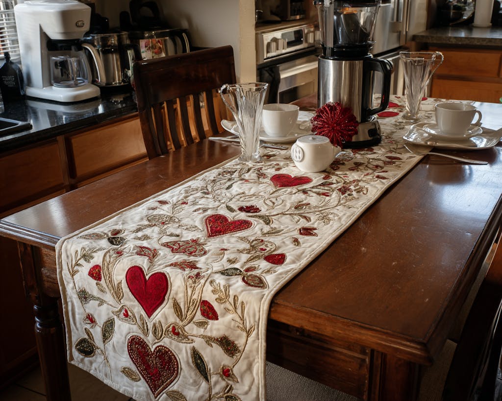 Hearts and florals—just beautiful! It adds warmth and love to every breakfast and dinner I serve.