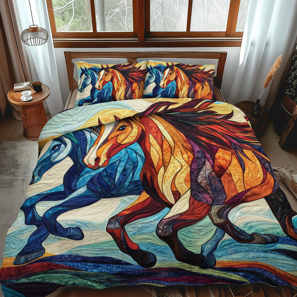 Equine Running Horse 3-Piece Quilted Bedding Set NCU0PD586