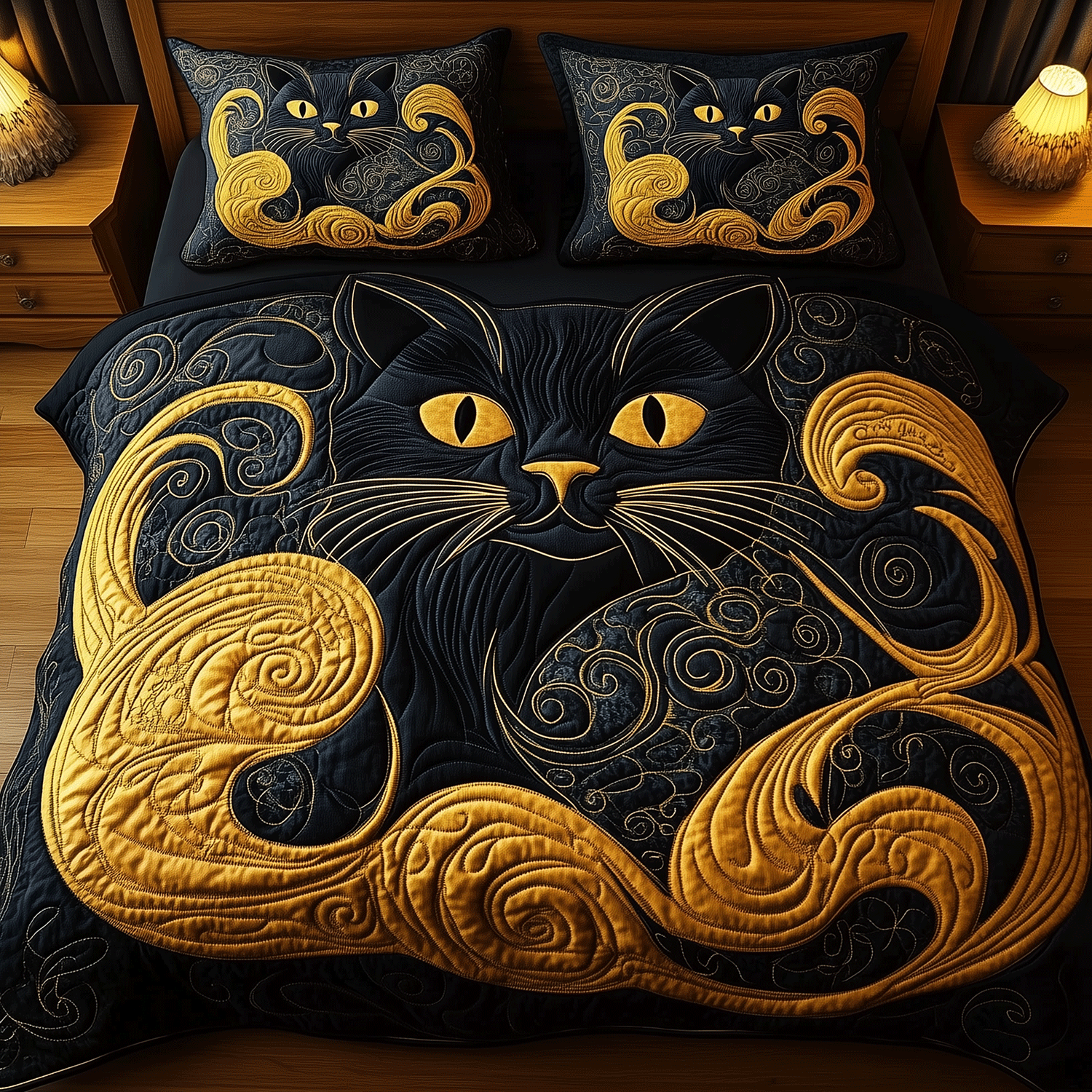 Feline Elegance 3-Piece Quilted Bedding Set NCU0TH2241