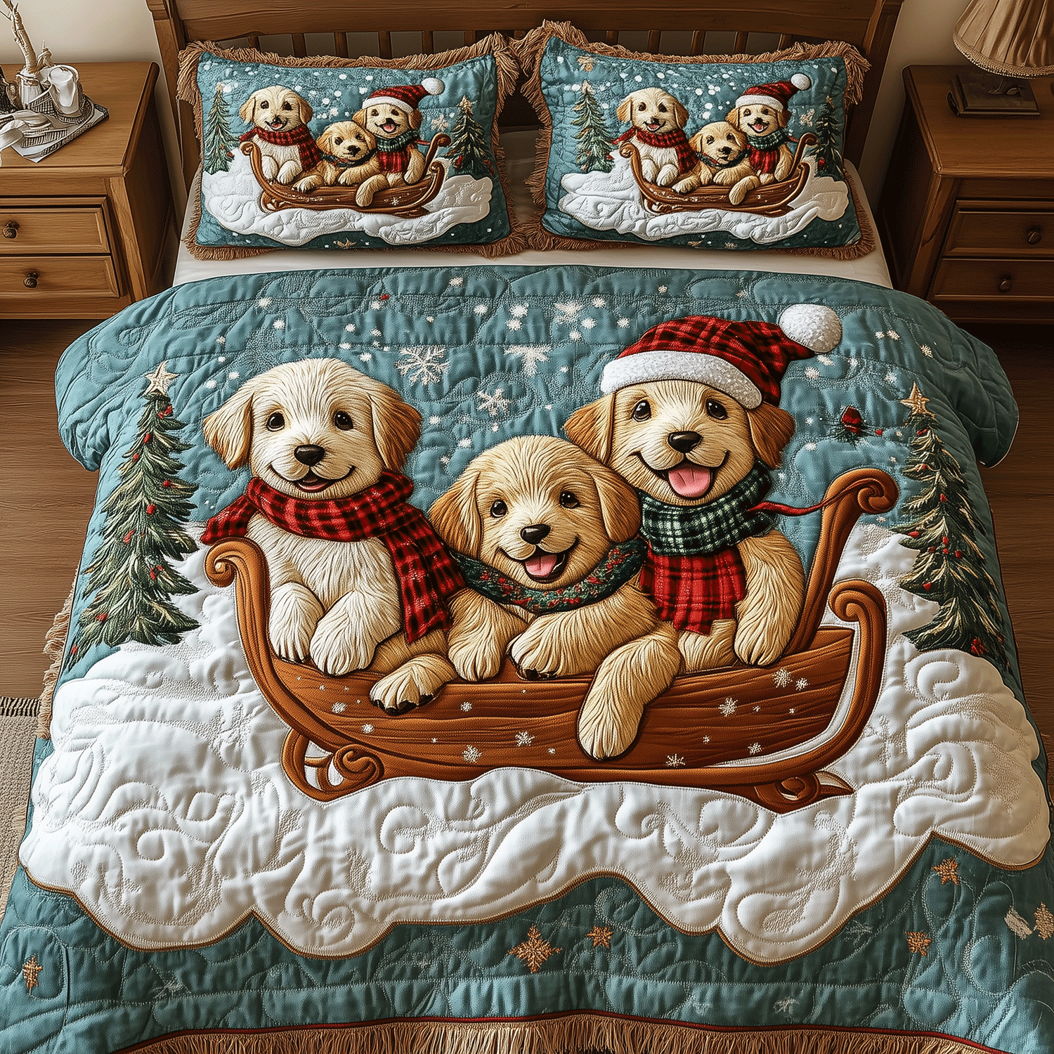Festive Golden Retriever 3-Piece Quilted Bedding Set NCU0TH2325