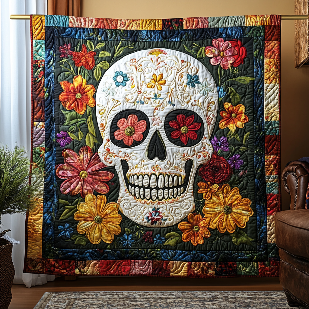 Festive Skull Flowers Quilted Blanket NCU0TL1895