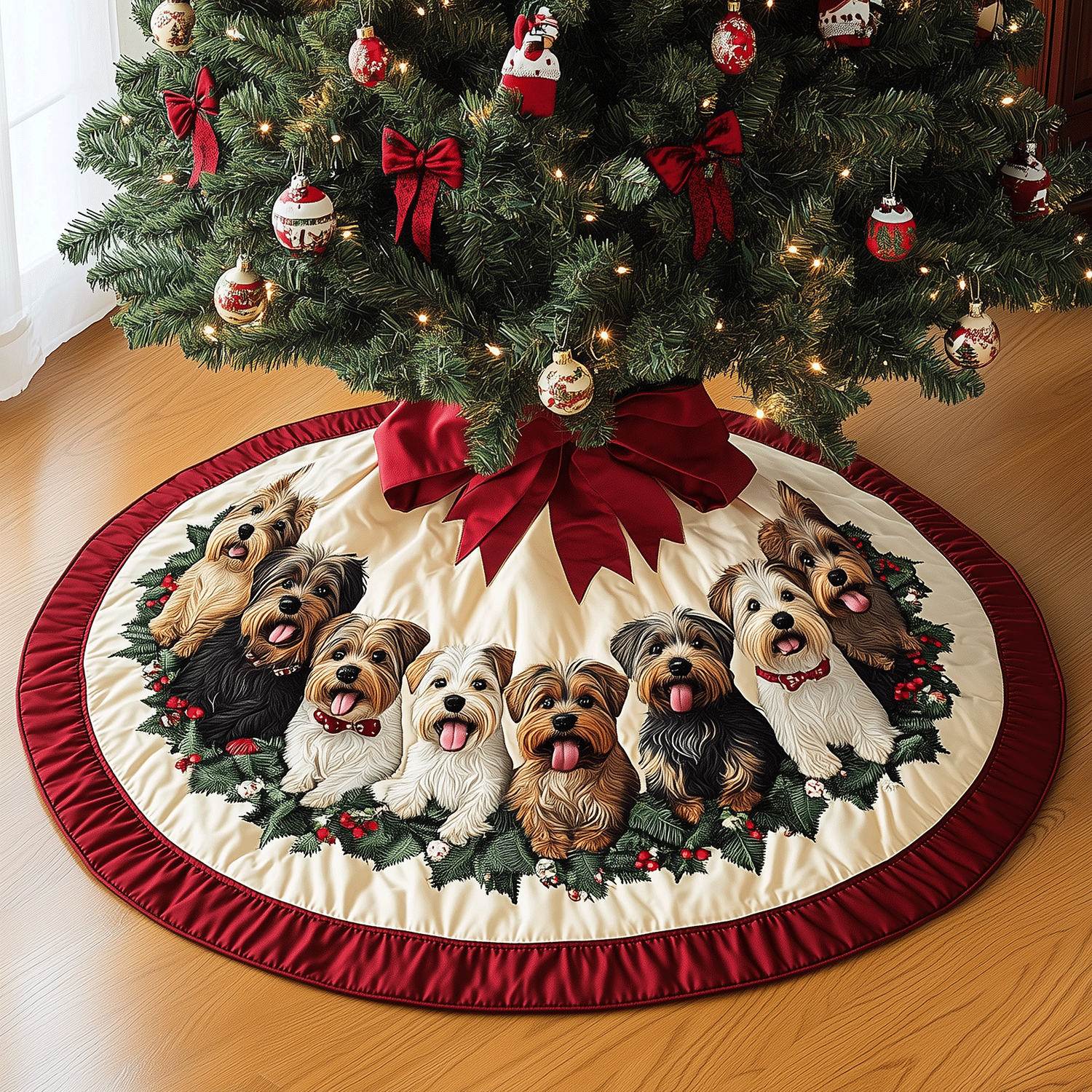Festive Yorkie Circle Quilted Christmas Tree Skirt NCU0TH2027