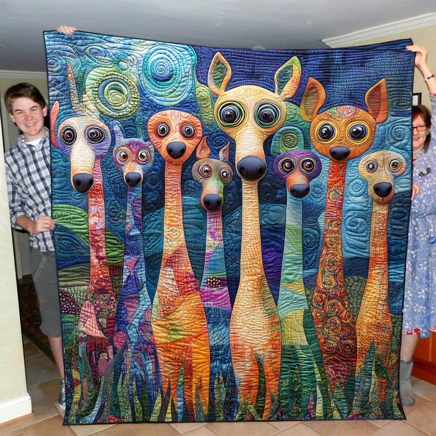 Absolutely love this quilt! The colorful dog pattern brightens my bedroom, fabric feels plush and smooth, and the craftsmanship is stunning.