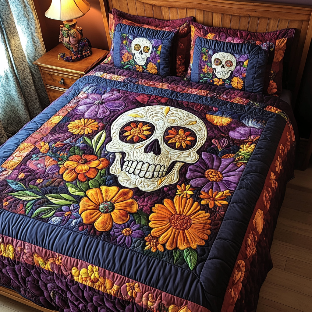 Floral Skull Love 3-Piece Quilted Bedding Set NCU0TL1925