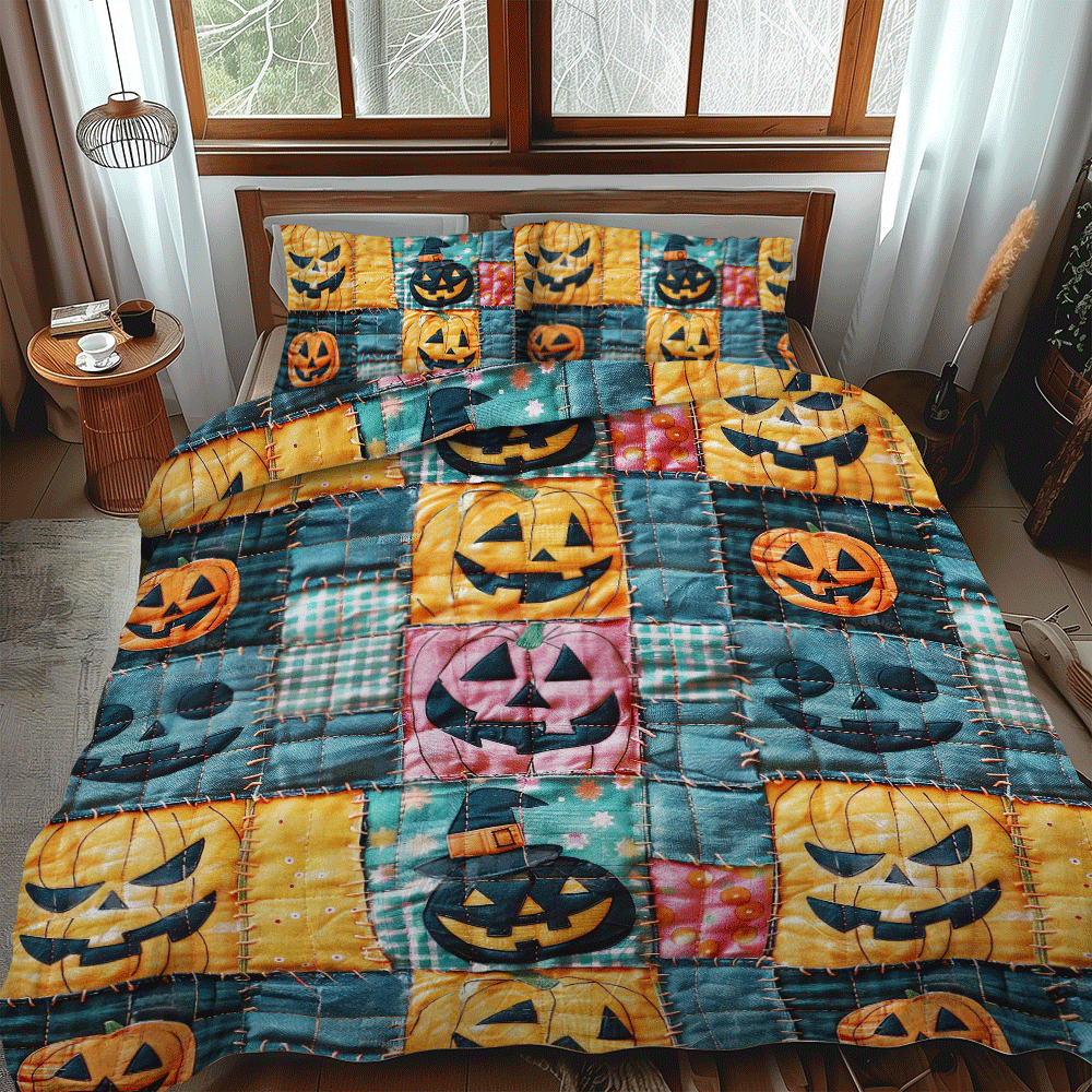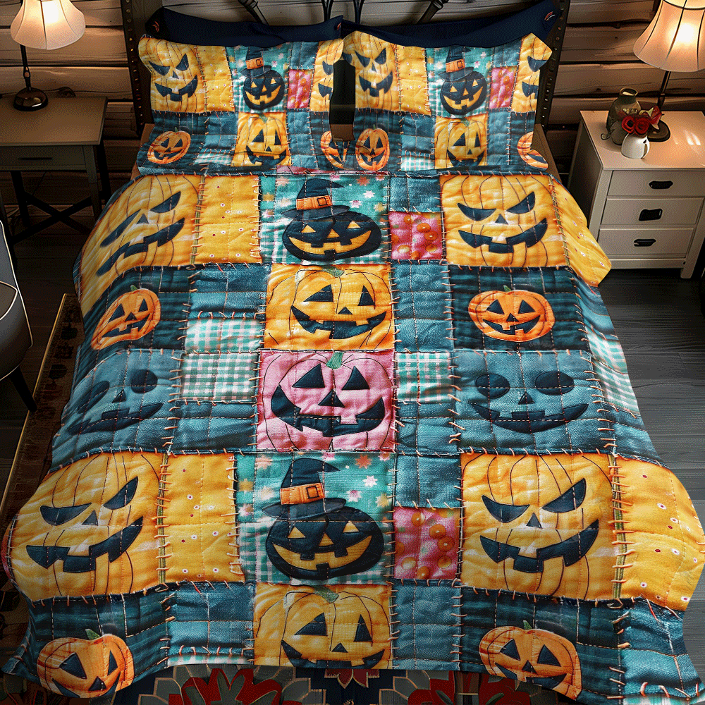 Ghostly House Halloween 3-Piece Quilted Bedding Set NCU0PD805