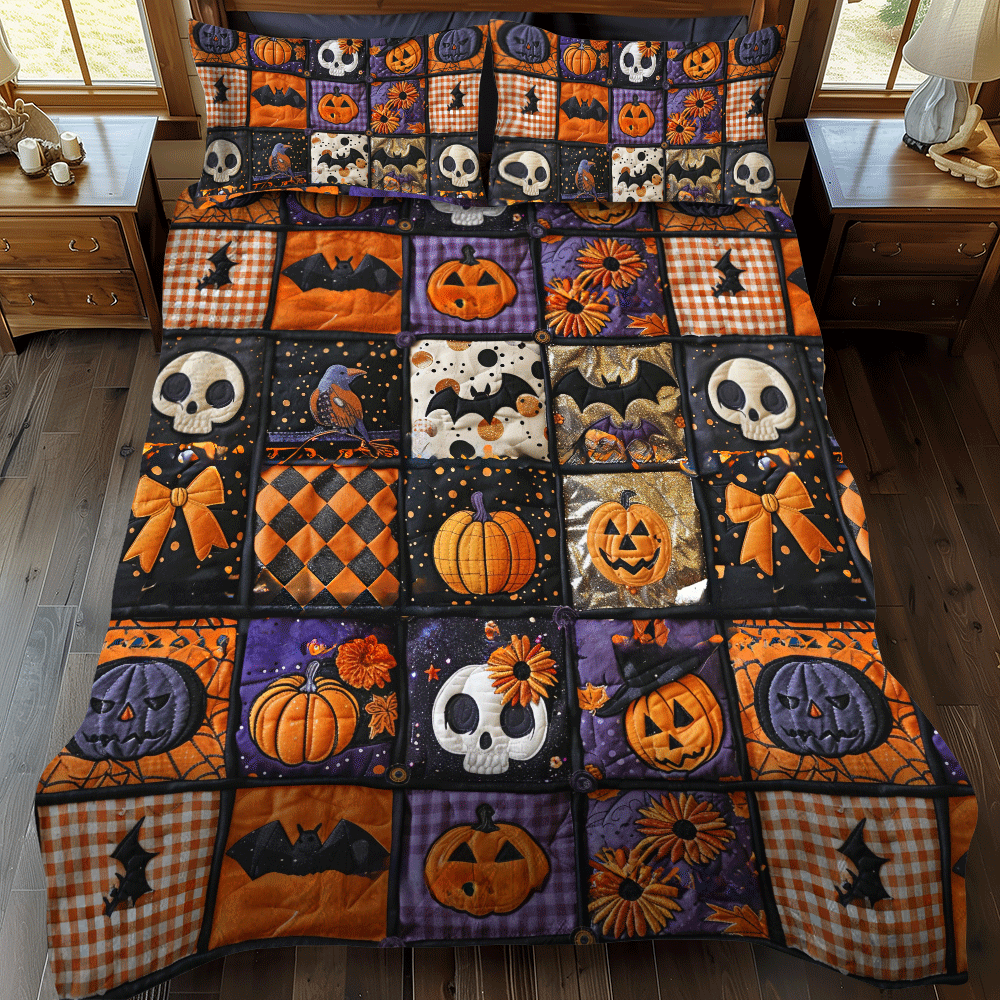 Ghoulish Halloween 3-Piece Quilted Bedding Set NCU0PD800