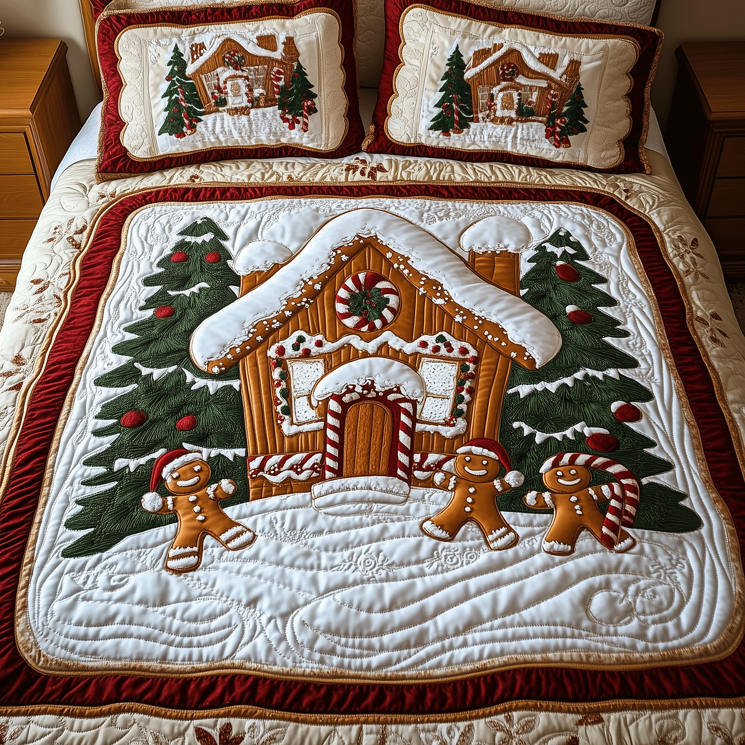 Gingerbread Village 3-Piece Quilted Bedding Set NCU0TH2226