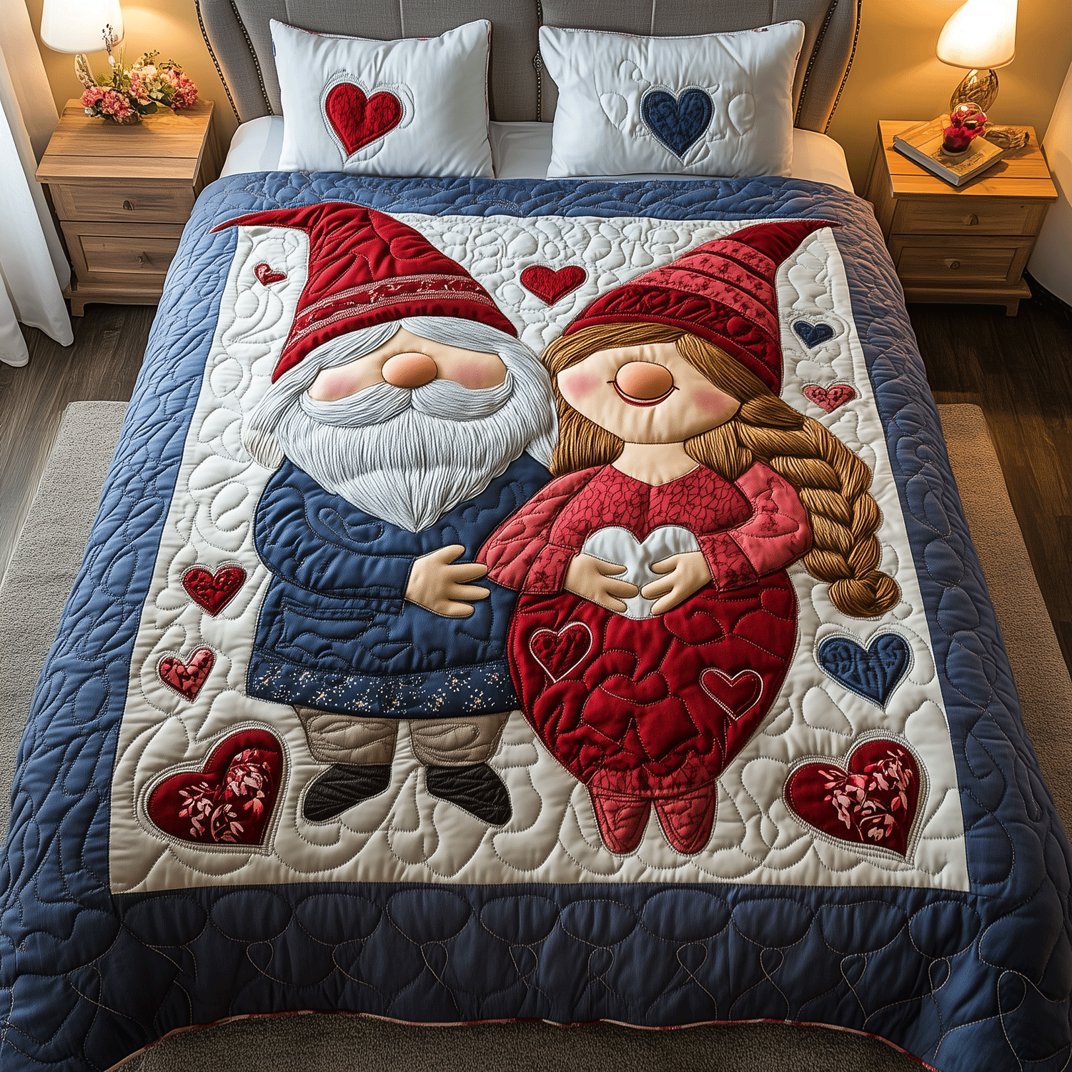 Gnome of Love 3-Piece Quilted Bedding Set NCU0TH2465