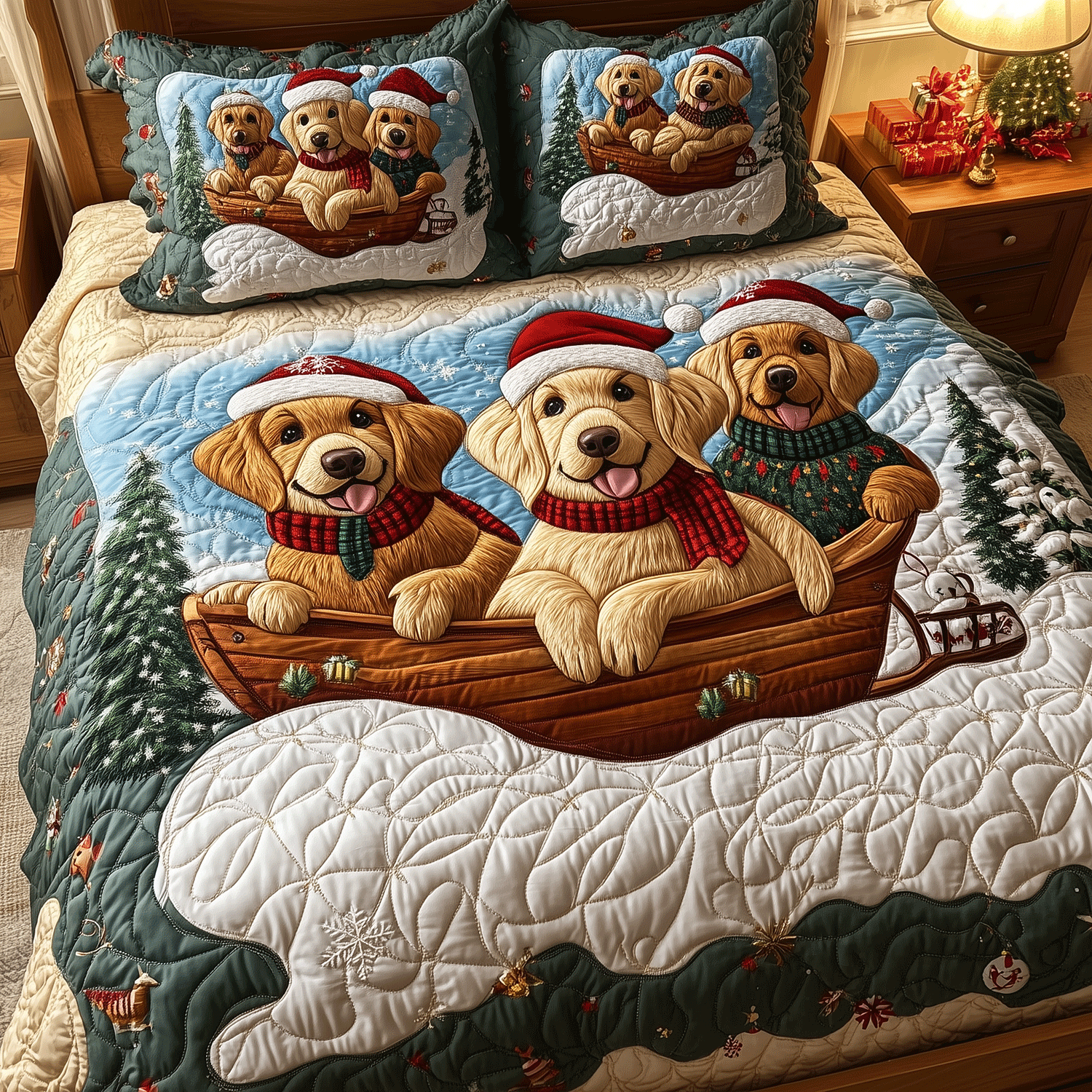 Golden Sleigh Adventure 3-Piece Quilted Bedding Set NCU0TH2330
