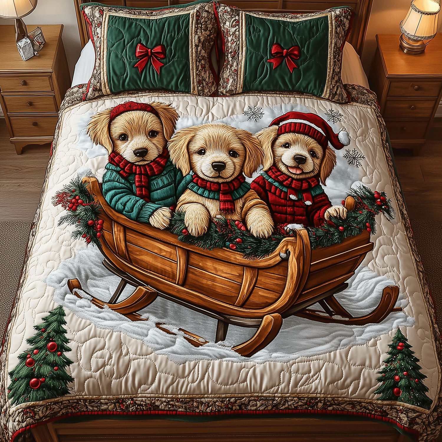 Golden Winter Bliss 3-Piece Quilted Bedding Set NCU0TH2328