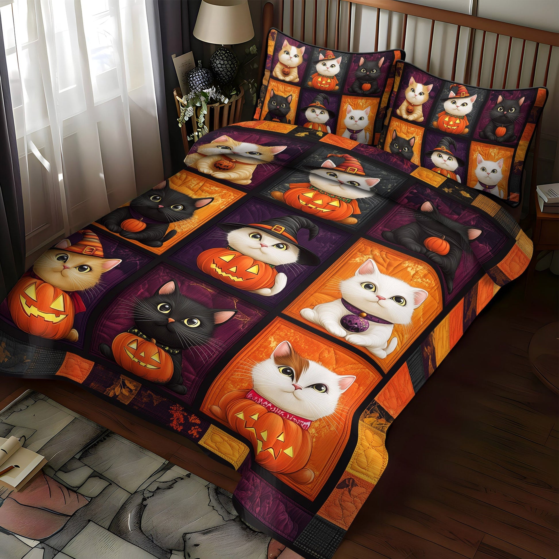 Halloween Cat 3-Piece Quilted Bedding Set NCU0TL1166