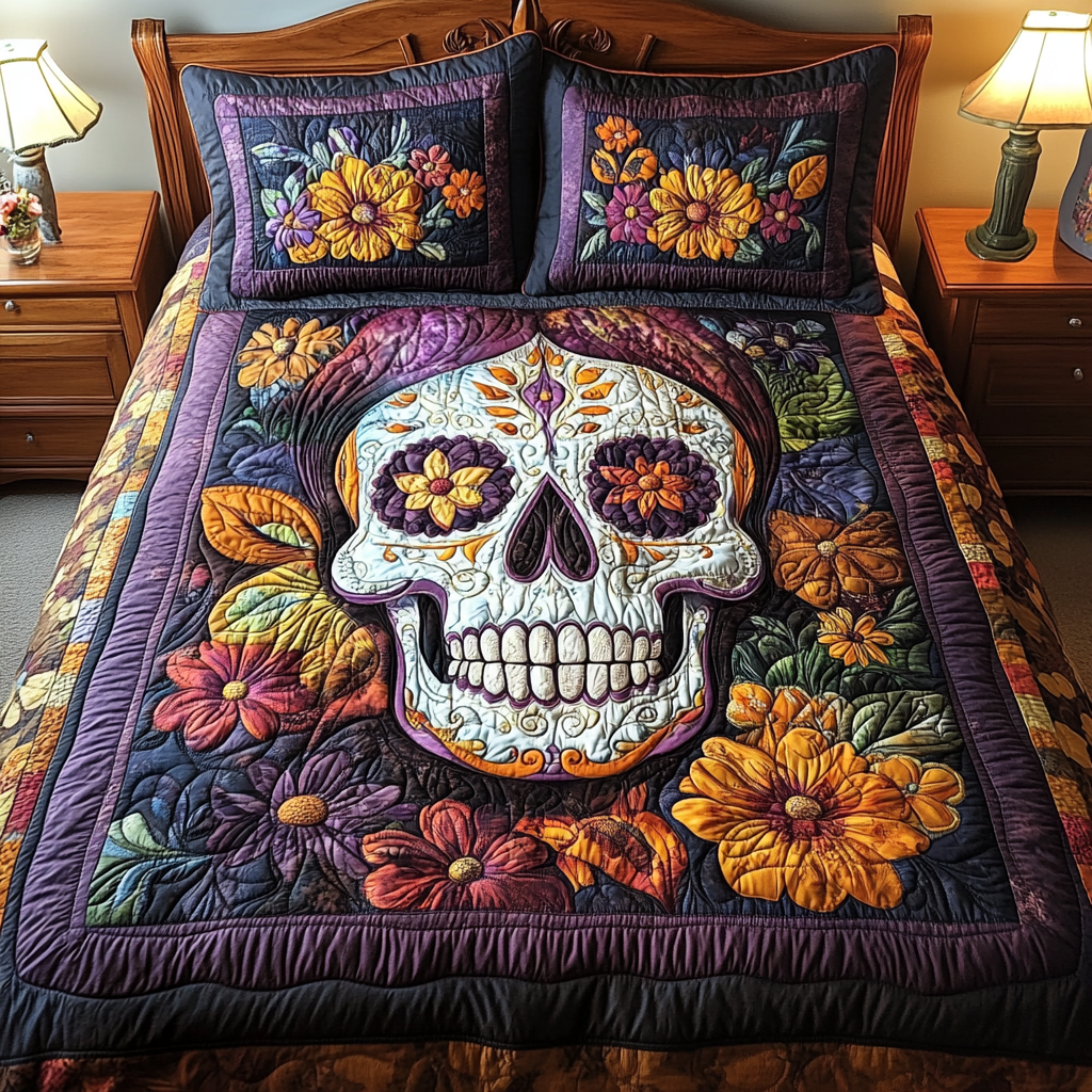 Intricate Skull 3-Piece Quilted Bedding Set NCU0TL1920