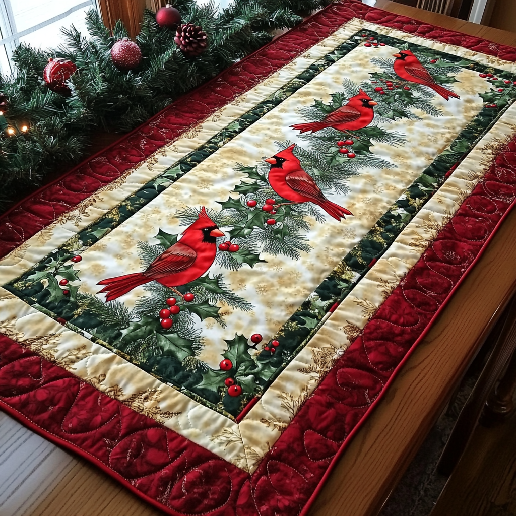 Joyful Cardinal Chorus Quilted Table Runner NCU0DK1593