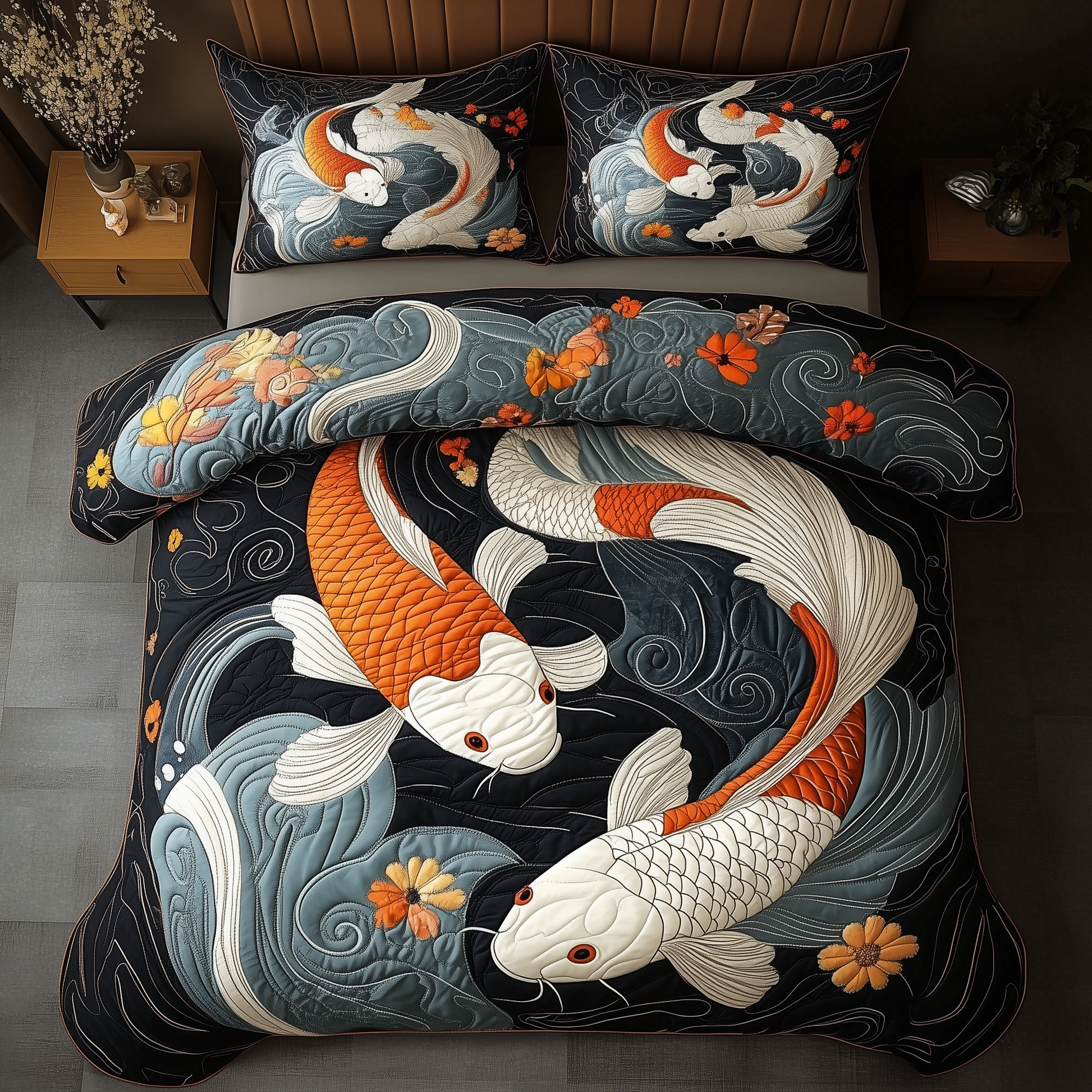 Koi Harmony 3-Piece Quilted Bedding Set NCU0DV2956
