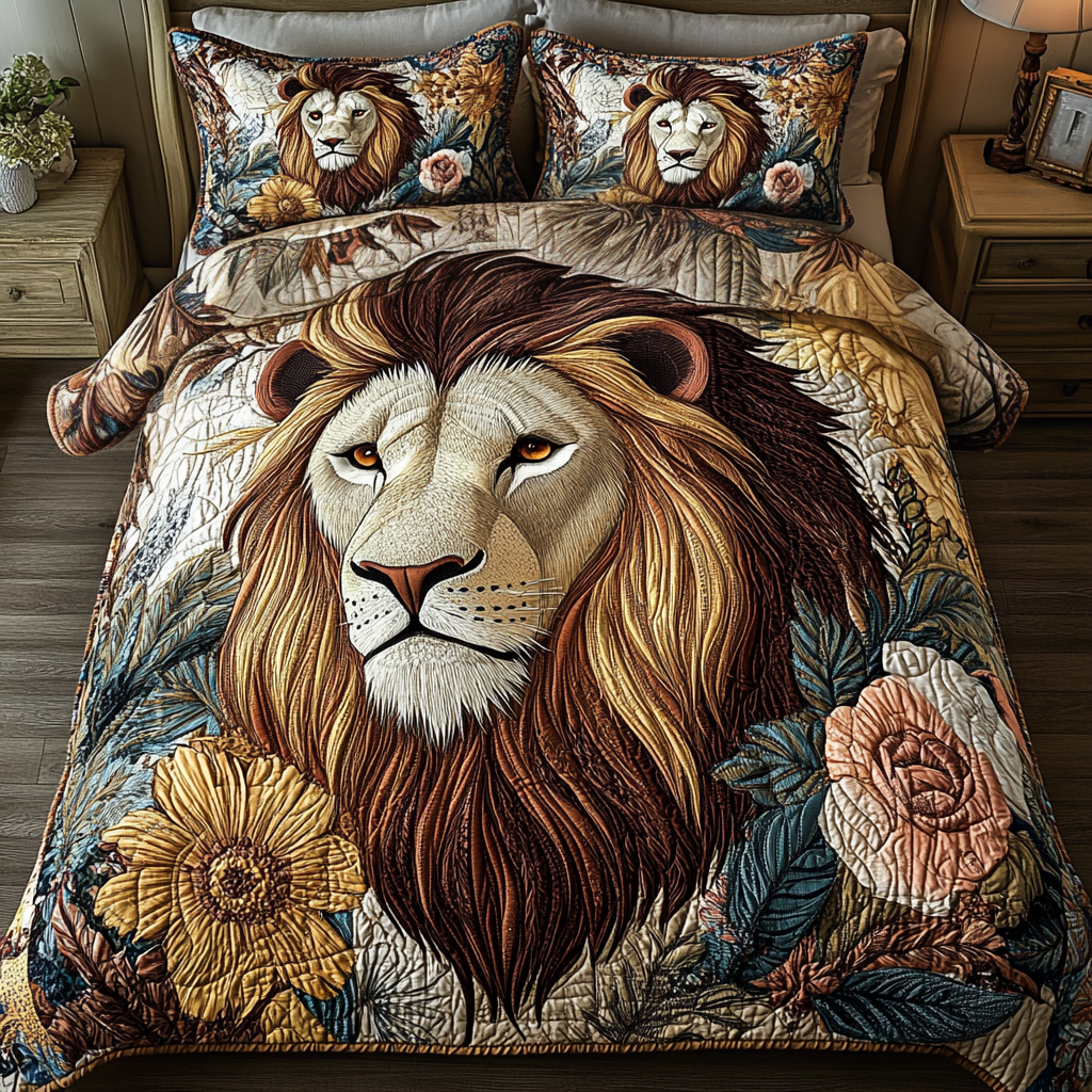 Lion Emblem 3-Piece Quilted Bedding Set NCU0VH324