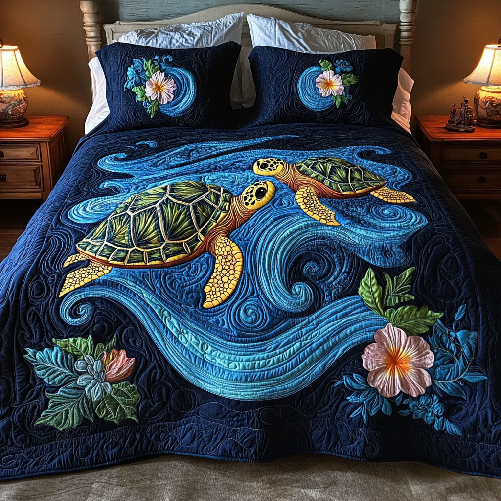 Marine Heartbeats 3-Piece Quilted Bedding Set NCU0PT2884